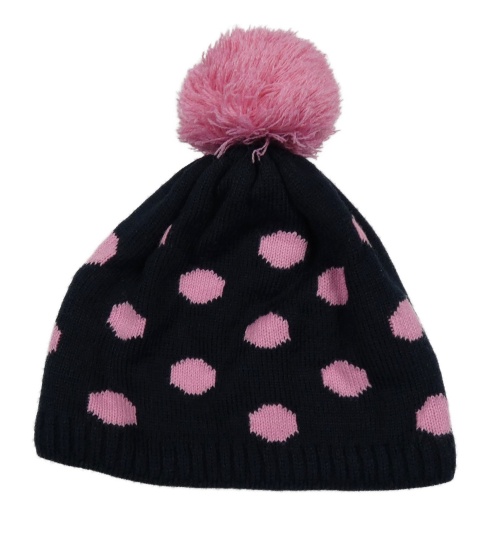 Čierno-ružová bodkovaná á pletená čapica s brmbolcom