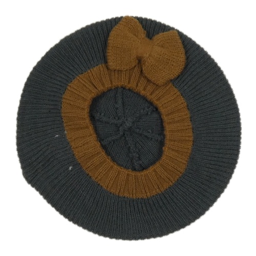 Tmavošedo-hnedý pletený baretka s mašlou Vertbaudet