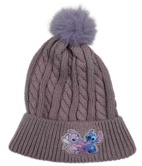 Pudrové fialová vzorovaná pletená čapica so Stitchem a brmbolcom