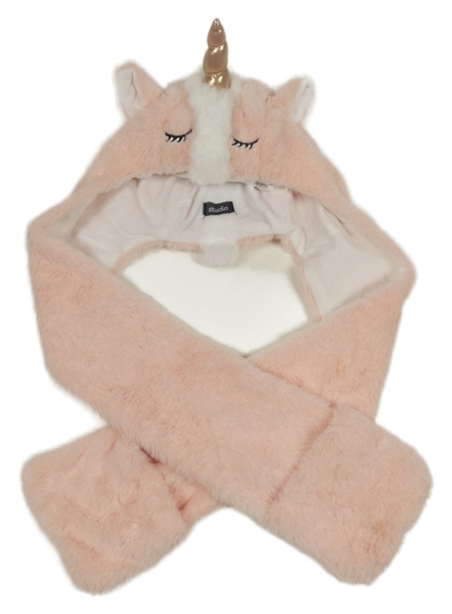 Ružová kožušinová čapica so šálou - jednorožec Studio