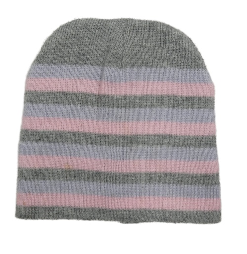 Sivo-světlerůžovo/fialová pruhovaná pletená čapica