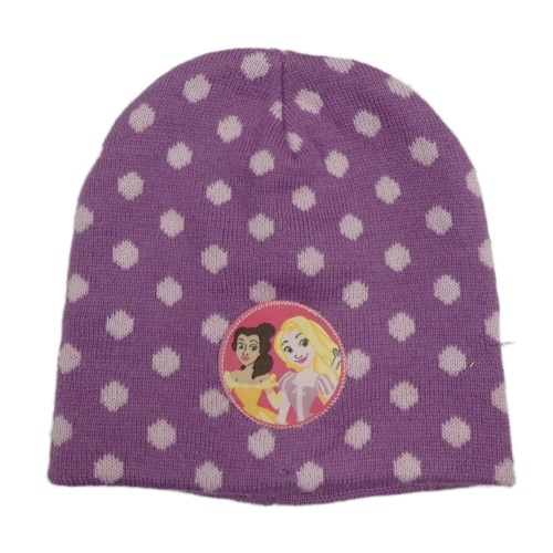 Fialová bodkovaná á pletená čapica s nášivkou s princeznami Disney
