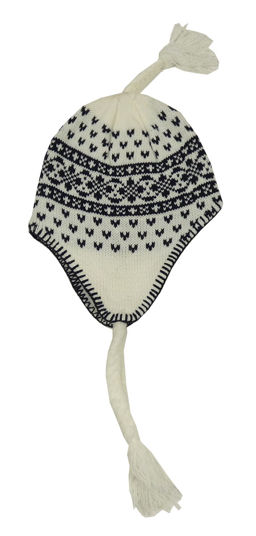 Smotanová vzorovaná čapica s strapcemi