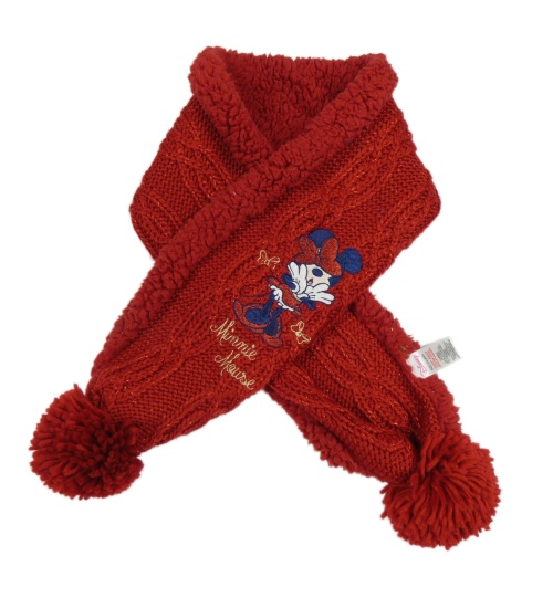 Červená trblietavá šál s Minnie a bambulemi Disney