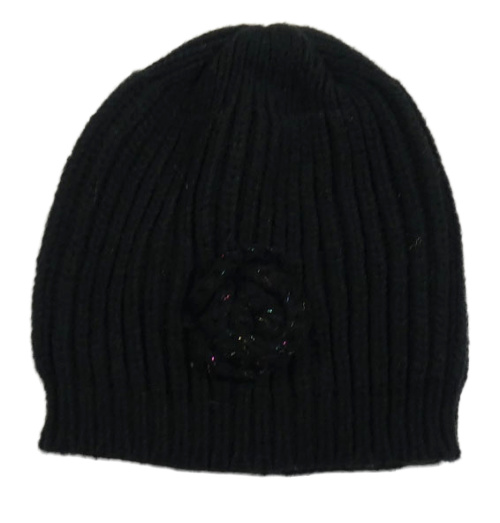 Čierna pletená rebrovaná čapica s květem