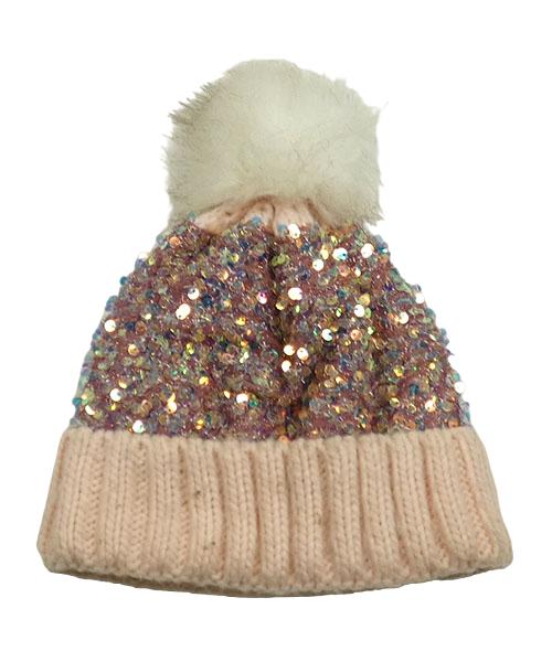 Nové - Ružová pleteno/flitrová čapica s brmbolcom George