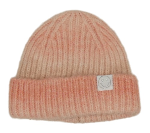 Svetloružová melírovaná ombré rebrovaná pletená čapica so smajlíkom George