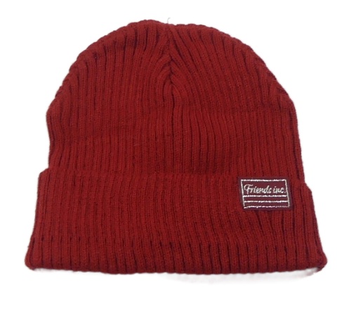 Červená pletená čapica s nášivkou