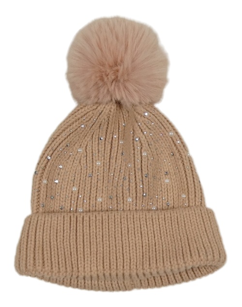 Svetloružová čapica s kamienkami a brmbolcom