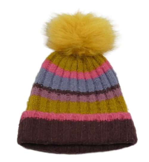 Farebná pruhovaná rebrovaná pletená čapica s brmbolcom George