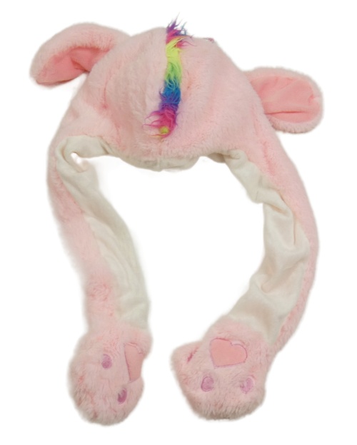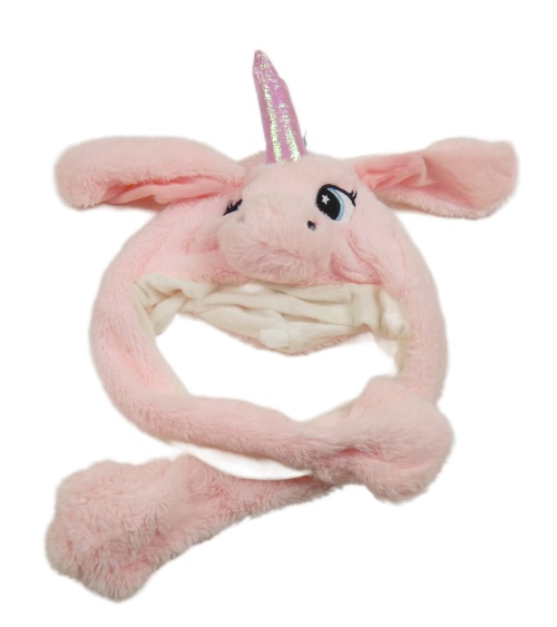 Ružová chlpatá čapica so šálou - jednorožec