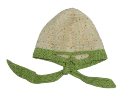 Smetanovo-zelená melírovaná pletená čapica s prestrihmi