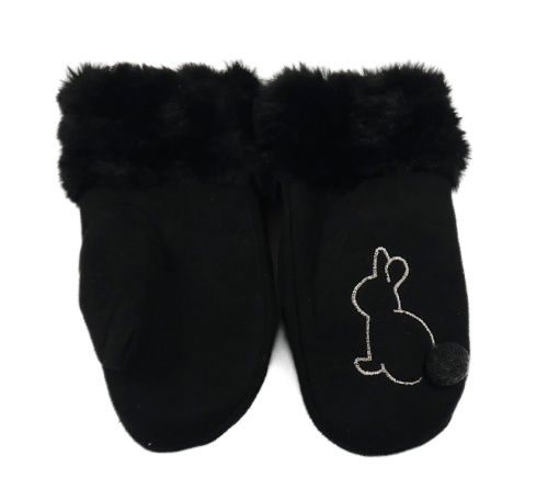 Černé semišové zateplené palcové rukavice s králikom a kožešinou