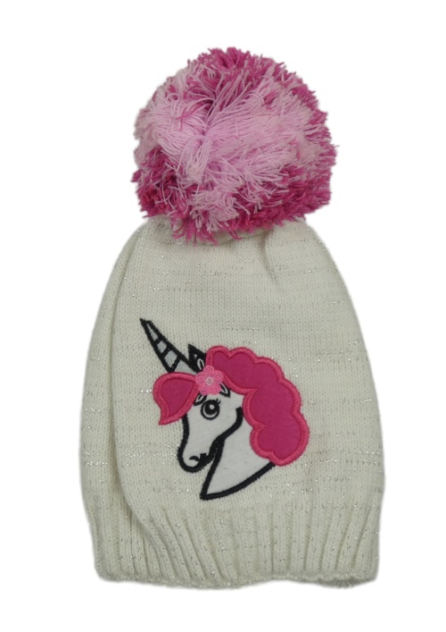 Biela trblietavá čapica s jednorožcom a brmbolcom