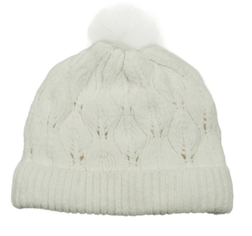 Biela vzorovaná žinylková podšitá čapica s brmbolcom