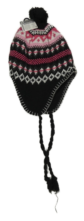 Nové - čierno-bielo-ružová vzorovaná čapica s brmbolcom