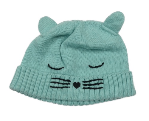 Zelená pletená podšitá čapica s ušima - mačka Next