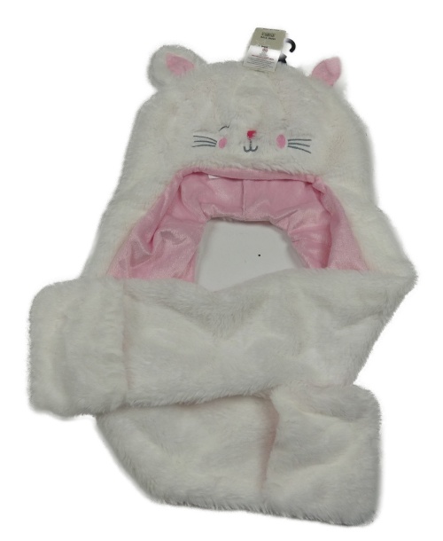 Nové - biela chlpatá podšitá čapica s šálou - mačka Peacocks