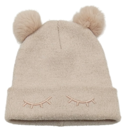 Svetloružová trblietavá čapica s bambulemi H&M