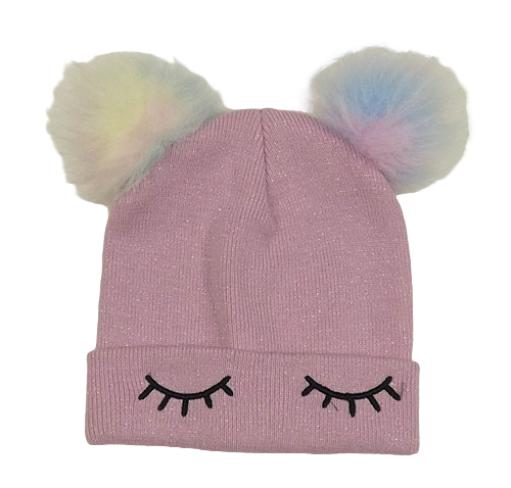 Ružová trblietavá čapica s očima a bambulemi Dopodopo