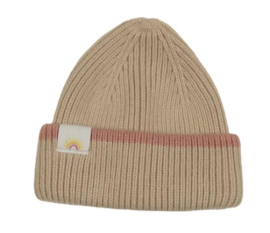Pudrová rebrovaná pletená čapica s nášivkou Leigh Tucker