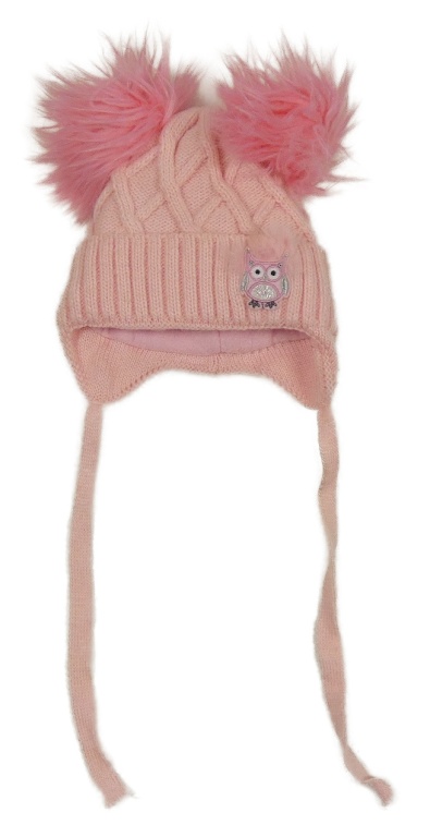 Svetloružová čapica so sovičkou a bambulemi