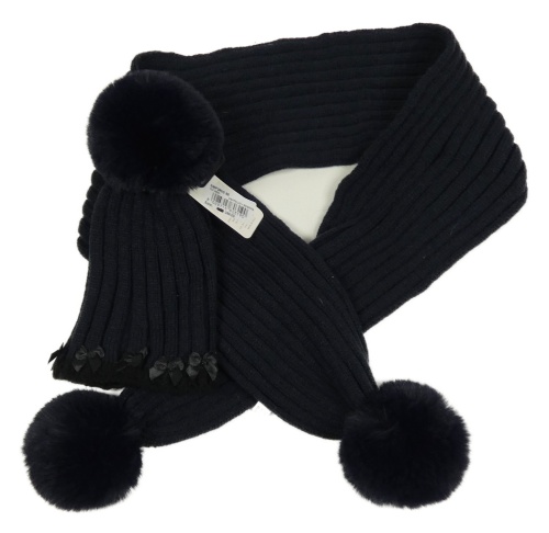 Nové - 2Set - Tmavomodrá rebrovaná pletená čapica s mašličkami a bambulí + šál envivia