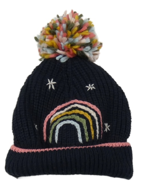 Tmavomodro-farebná čapica s dúhou a brmbolcom