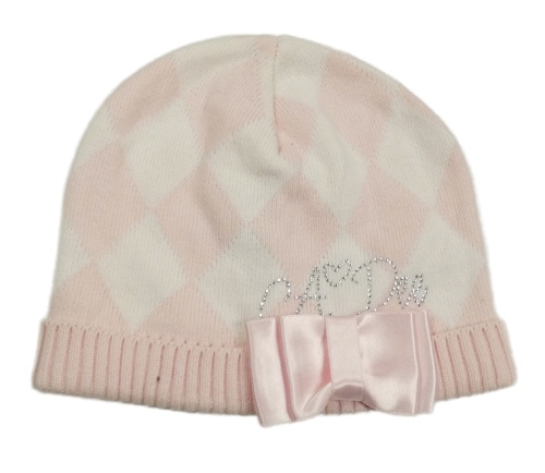 Svetloružová -biela károvaná čapica s kamienkami a mašlou