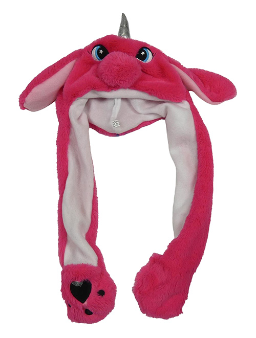 Tmavoružová chlpatá čepice - jednorožec