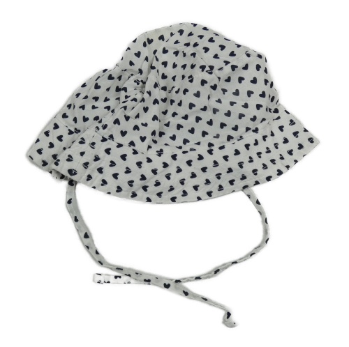 Bielo-čierny plátenný zavazovací klobúk so srdiečkami lupilu