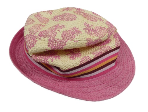 Béžovo-růžový slamák s ananásmi a pruhmi
