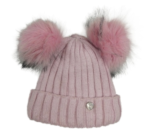 Svetloružová pletená rebrovaná podšitá čapica s bambulemi