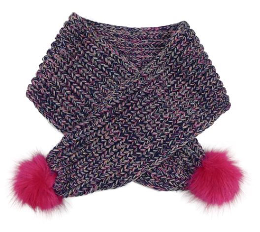 Tmavomodro-ružovo-farebná melírovaná šál so trblietkami a bambulemi Tu