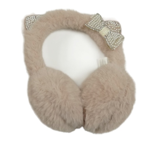 Světlerůžové chlupaté klapky na uši s mašličkou s korálkami