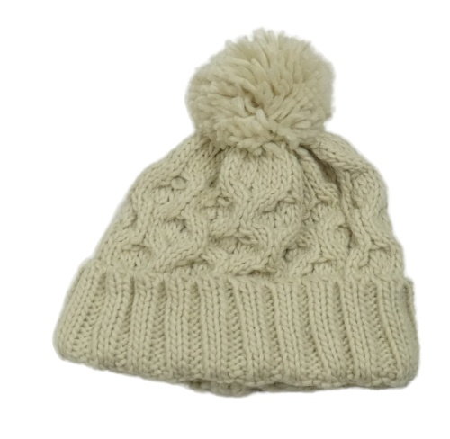 Béžová pletená čapica s brmbolcom