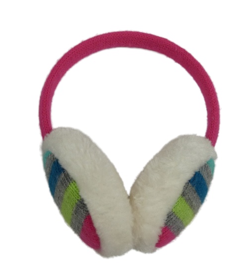 Bílo-růžovo-šedé chlupaté klapky na uši