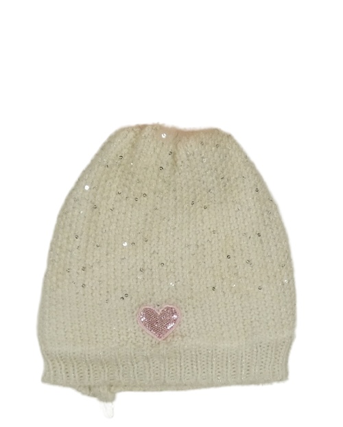 Smotanová pletená zateplená čapica s flitrami a srdiečkom Topolino