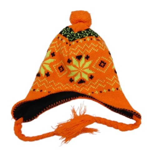 Neónově oranžová vzorovaná pletená čapica s brmbolcom