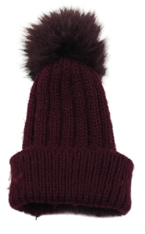 Tmavovínová rebrovaná pletená čapica s brmbolcom