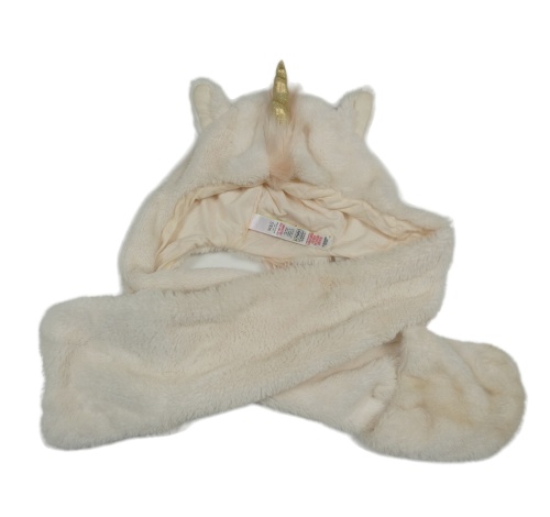 Svetloružová kožušinová čapica so šálou - jednorožec M&S vel.128-140