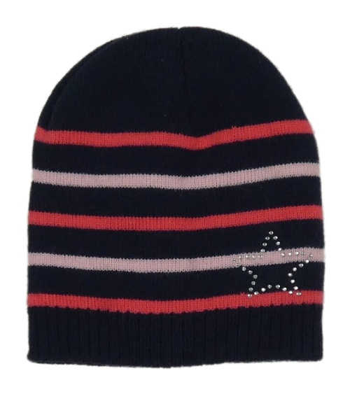 Tmavomodro-ružová čapica s pruhmi a hvězdou z kamínků