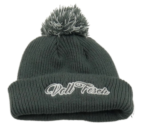 Tmavosivá pletená čapica s nápisom a brmbolcom