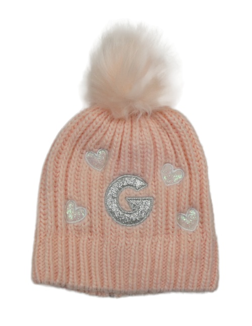 Světlerůžová čepce s písmenem, hviezdami a brmbolcom