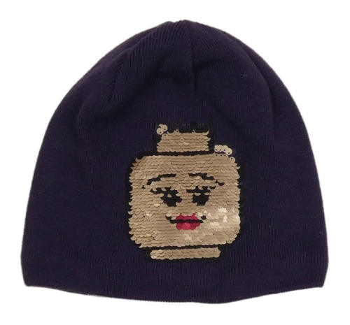 Fialová pletená podšitá čapica s obrázkem z flitrů LEGO