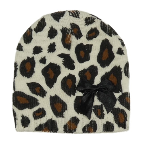Smotanová čapica s leopardím vzorom a mašlou