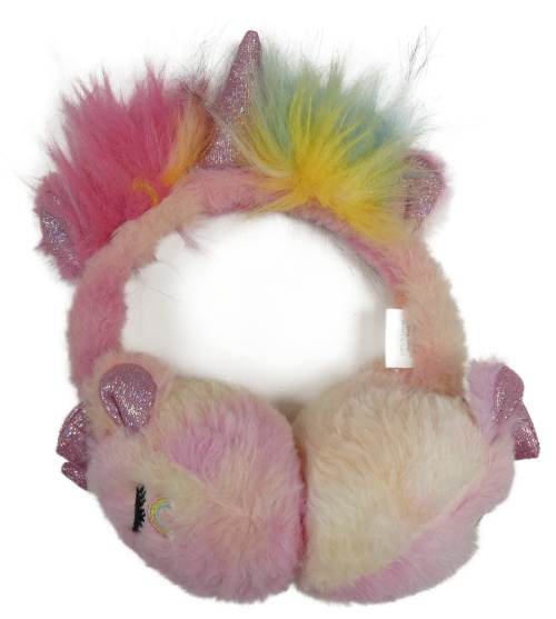 Růžovo-meruňkovo-žluté kožešinové klapky na uši s jednorožcami