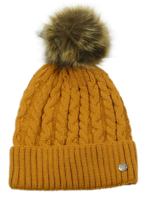 Horčicová zateplená čapica s brmbolcom