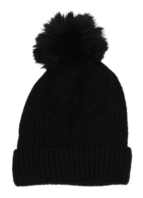 Čierna vzorovaná pletená zateplená čapica s brmbolcom