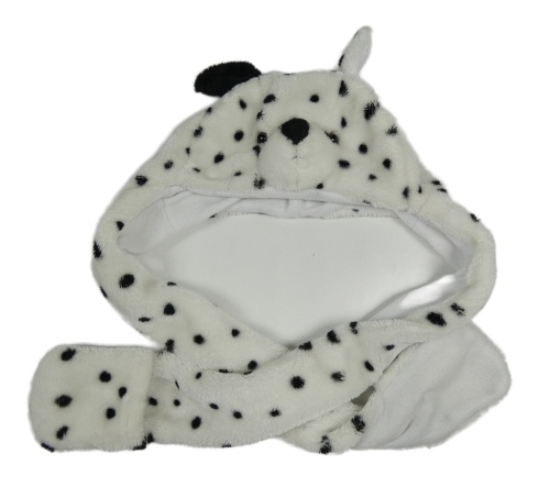 Biela chlpatá bodkovaná á čapica so šálou - dalmatin
